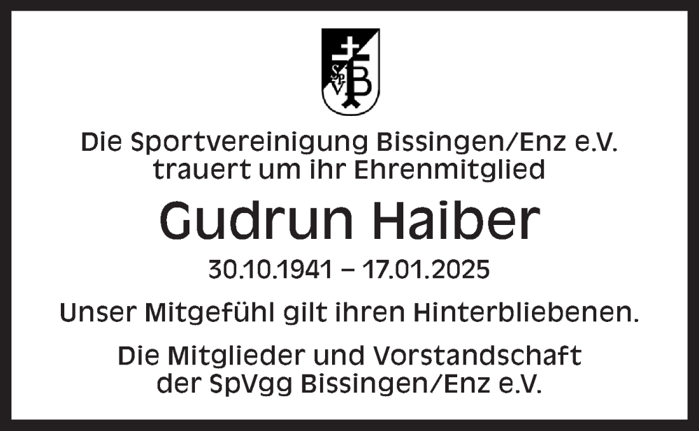 Hier finden Sie alle Traueranzeigen aus der Zeitung, die bisher für Gudrun Haiber erschienen sind. Weitere Traueranzeigen, die in der Zeitung erscheinen, werden hier ebenfalls aufgelistet