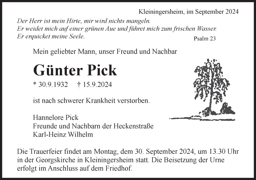 Hier finden Sie alle Traueranzeigen aus der Zeitung, die bisher für Günter Pick erschienen sind. Weitere Traueranzeigen, die in der Zeitung erscheinen, werden hier ebenfalls aufgelistet
