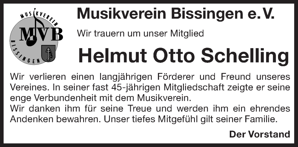 Hier finden Sie alle Traueranzeigen aus der Zeitung, die bisher für Helmut Otto Schelling erschienen sind. Weitere Traueranzeigen, die in der Zeitung erscheinen, werden hier ebenfalls aufgelistet
