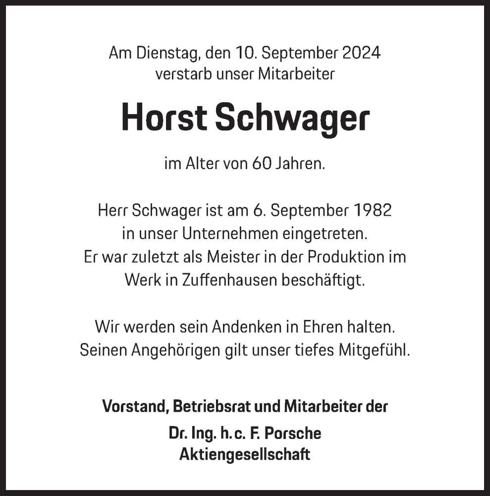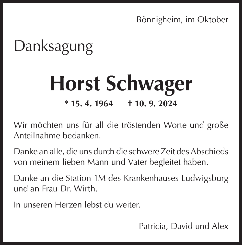 Hier finden Sie alle Traueranzeigen aus der Zeitung, die bisher für Horst Schwager erschienen sind. Weitere Traueranzeigen, die in der Zeitung erscheinen, werden hier ebenfalls aufgelistet