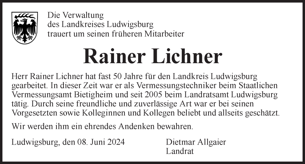 Hier finden Sie alle Traueranzeigen aus der Zeitung, die bisher für Rainer Lichner erschienen sind. Weitere Traueranzeigen, die in der Zeitung erscheinen, werden hier ebenfalls aufgelistet
