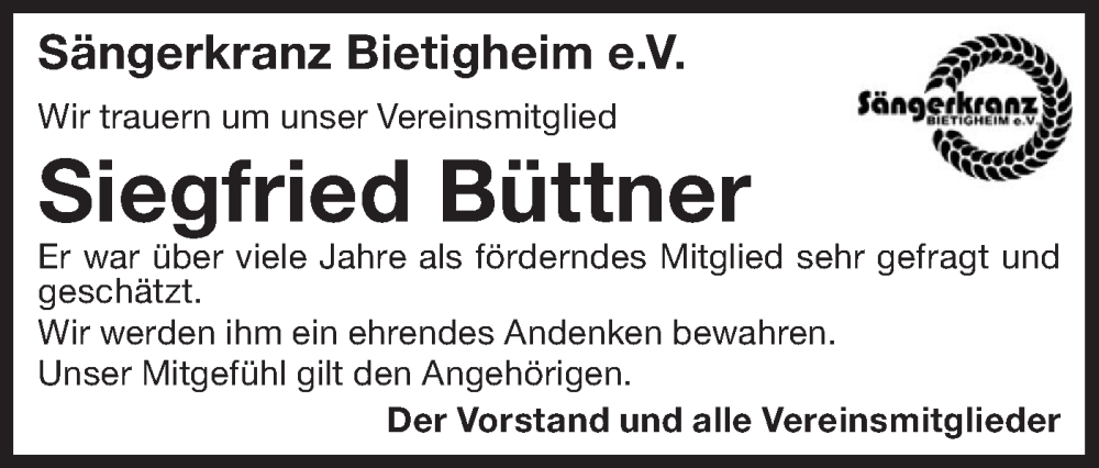 Hier finden Sie alle Traueranzeigen aus der Zeitung, die bisher für Siegfried Büttner erschienen sind. Weitere Traueranzeigen, die in der Zeitung erscheinen, werden hier ebenfalls aufgelistet