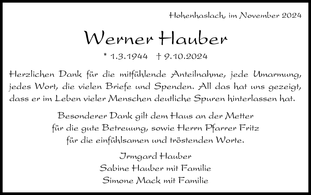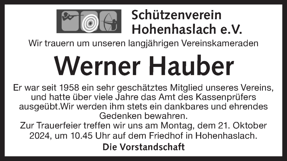 Hier finden Sie alle Traueranzeigen aus der Zeitung, die bisher für Werner Hauber erschienen sind. Weitere Traueranzeigen, die in der Zeitung erscheinen, werden hier ebenfalls aufgelistet