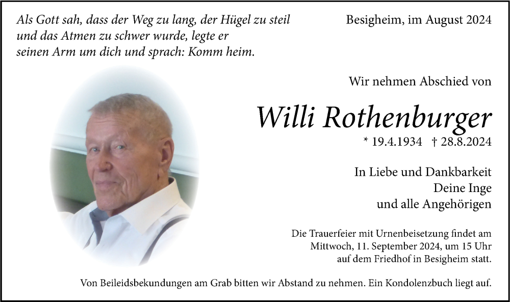 Hier finden Sie alle Traueranzeigen aus der Zeitung, die bisher für Willi Rothenburger erschienen sind. Weitere Traueranzeigen, die in der Zeitung erscheinen, werden hier ebenfalls aufgelistet